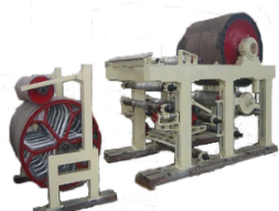 小型造紙機齒輪傳動,由齒輪傳動或由毛布帶動若干個烘缸為一組,若干組烘缸構成干燥部。各組烘缸的線速度可以分別調整,保持各組烘缸之間微量速差以補償紙頁在干燥過程中的收縮。出干燥部的紙頁干度一般在92~94%左右。在干燥部末端,一般配有冷缸,使水氣能在冷缸面上凝聚。冷凝水可以濕潤紙頁表面以利于在整飾中得到較佳的表面平滑度。烘缸直徑以1.5m的效果。單面光紙可以通過采用高硬度、高光潔度缸面的大直徑烘缸而得到較高的單面光澤度,大直徑烘缸直徑一般采用3~7.5m。